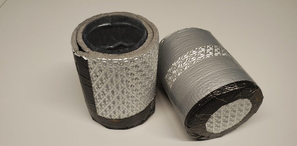 Schirtt 2: Umwickeln Sie die PET-Flasche von außen und unten mit Stücken der Iso-Matte und vixieren Sie alles gut mit Klebeband.