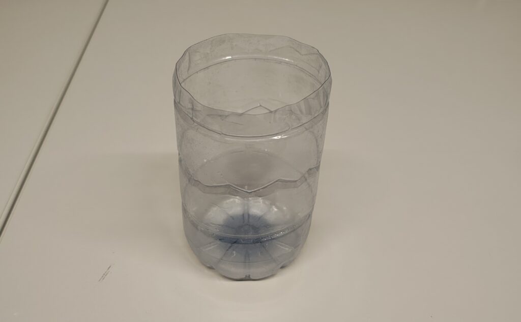 Schitt 1: Schneiden Sie die PET-Falsche quer auf. Sie benötigen nur die untere Hälfte der Flasche.