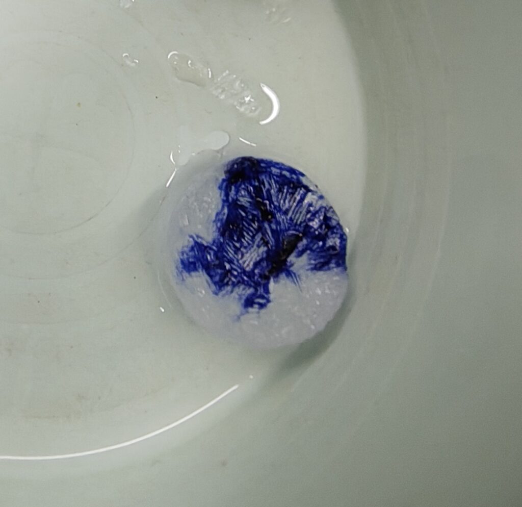 Untersuche die Teile des Kerns. Schaue dir dafür die Konsistenz an und prüfe mit dem Salinometer den Salzgehalt des enthaltenen Schmelzwassers. Tropfe etwas Tinte auf den Bohrkern und beobachte wie dieses sich in diesem verteilt.